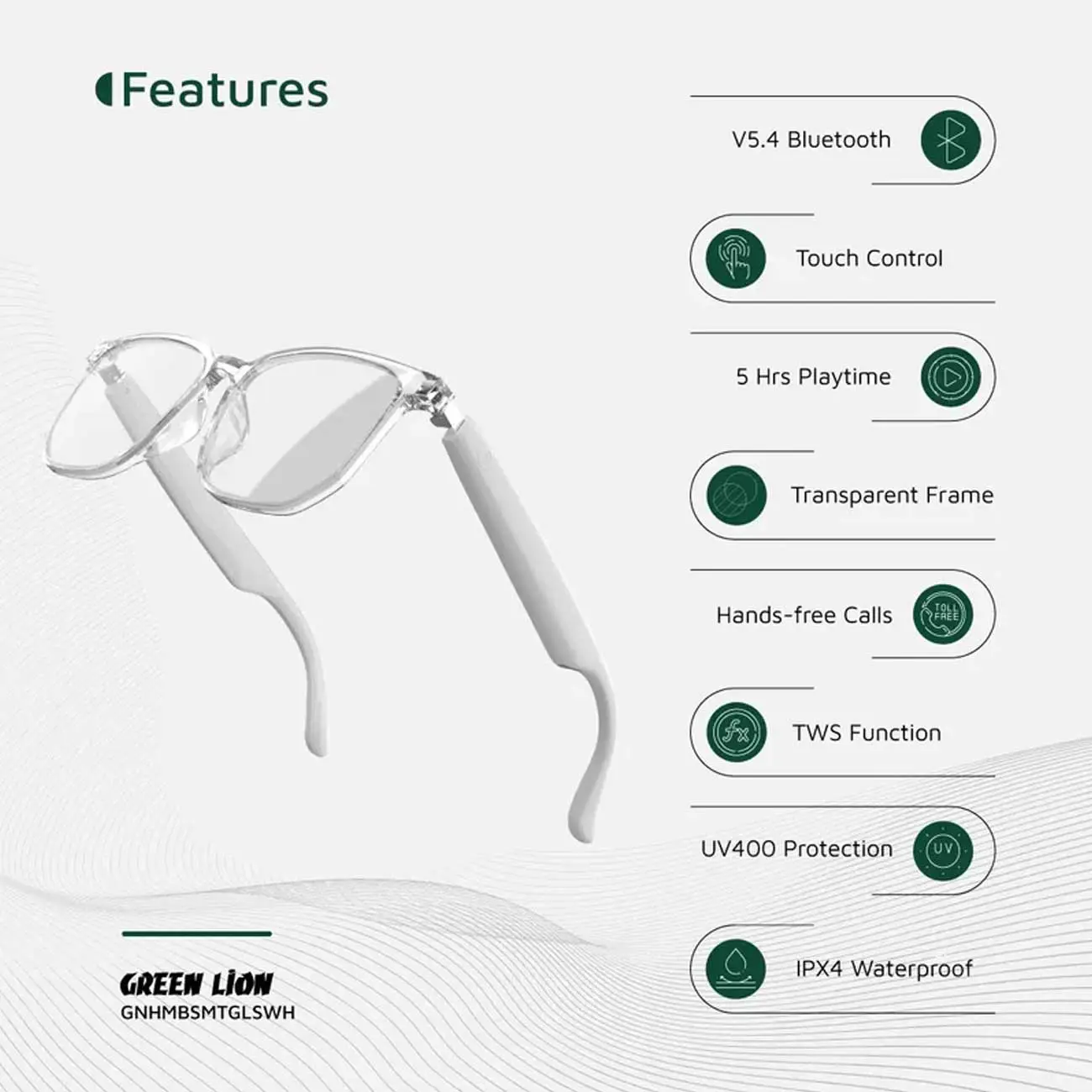 عینک هوشمند Hamburg گرین مدل Green Lion GNHMBSMTGLSWH