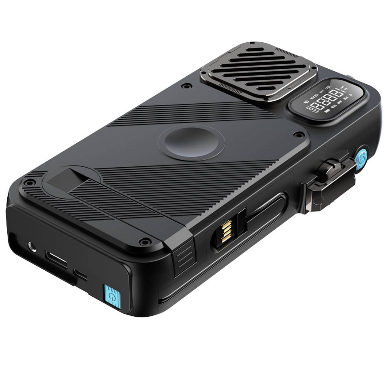 اسپیکر و پاوربانک خورشیدی 16000 پاورولوژی Powerology PP049 16000mAh Solar Power Bank with FM Radio Speaker and Lights دارای رادیو FM و چراغ قوه توان 20 وات با کابل متصل پاوربانک این روزها از ضروری ترین وسایل همراه ما به حساب می آیند. پاوربانک خورشیدی 16000 پاورولوژی Powerology PP049 توان 20 وات و کابل متصل با داشتن 2 پورت خروجی (Type C و USB) ، توان 20 وات، صفحه شارژ خورشیدی و ظرفیت اسمی 16000 میلی آمپر ساعت می تواند همراه خوبی برای شما باشد. داشتن اسپیکر 3 واتی بلوتوثی، رادیو FM، شارژر وایرلس ساعت هوشمند با نمایشگر دیجیتالی برای نمایش ساعت و موج رادیو و کابل های متصل (تایپ سی و لایتنینگ) کامل کننده ویژگی های این پاوربانک است.